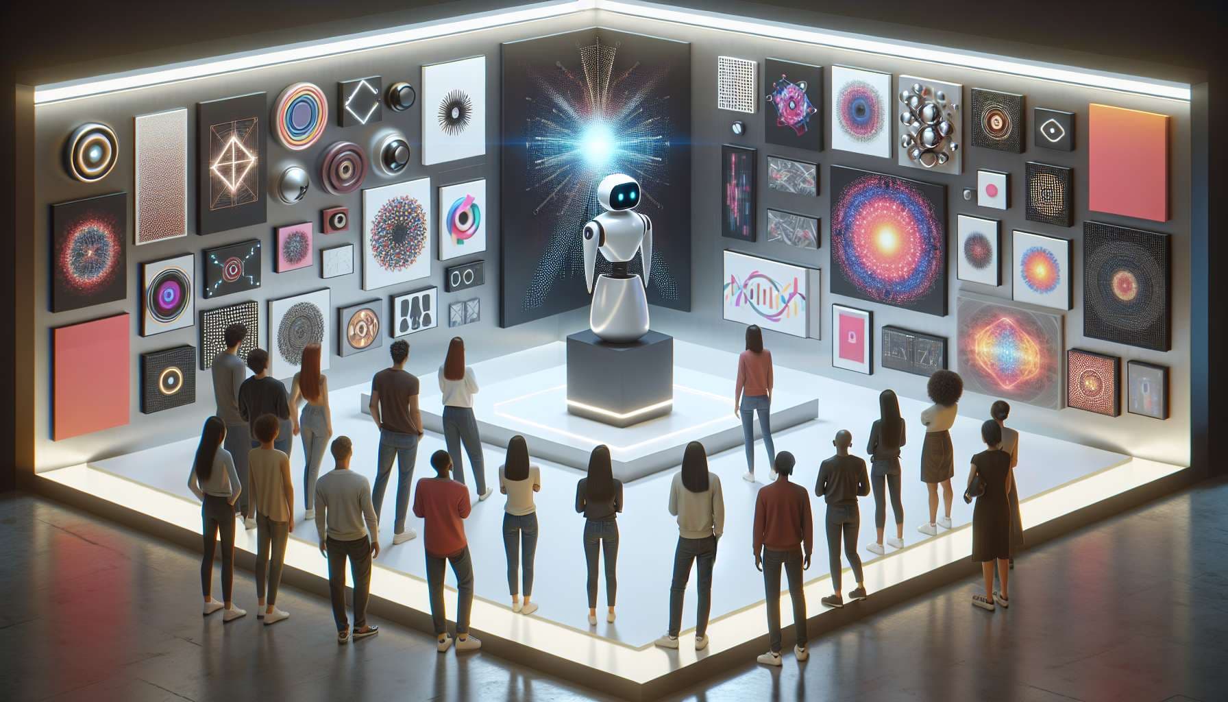 - Humans can set up the initial parameters or prompts for the AI. This may include basic guidelines like size, medium (e.g., digital, paint), or a broad theme. However, these parameters should not dictate the specific content or detailed style of the artwork.